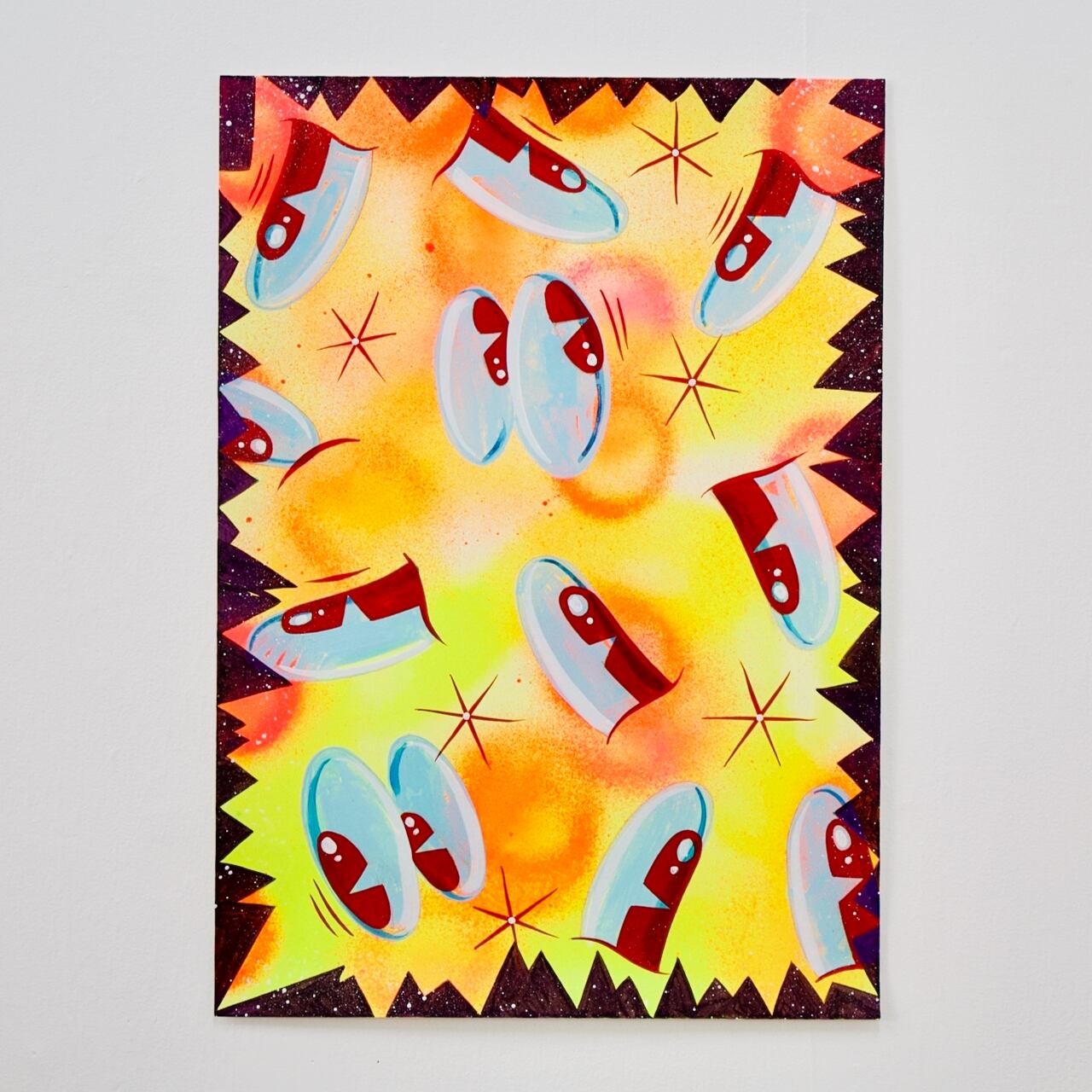 Vinnie Nylon has emerged as a graffiti writer in the 1980s and is known to have had a significant influence on many street artists, including Banksy. His pop and nostalgic style of freehand lines, mixing the old with the new, is admired not only by collectors but also by artists.