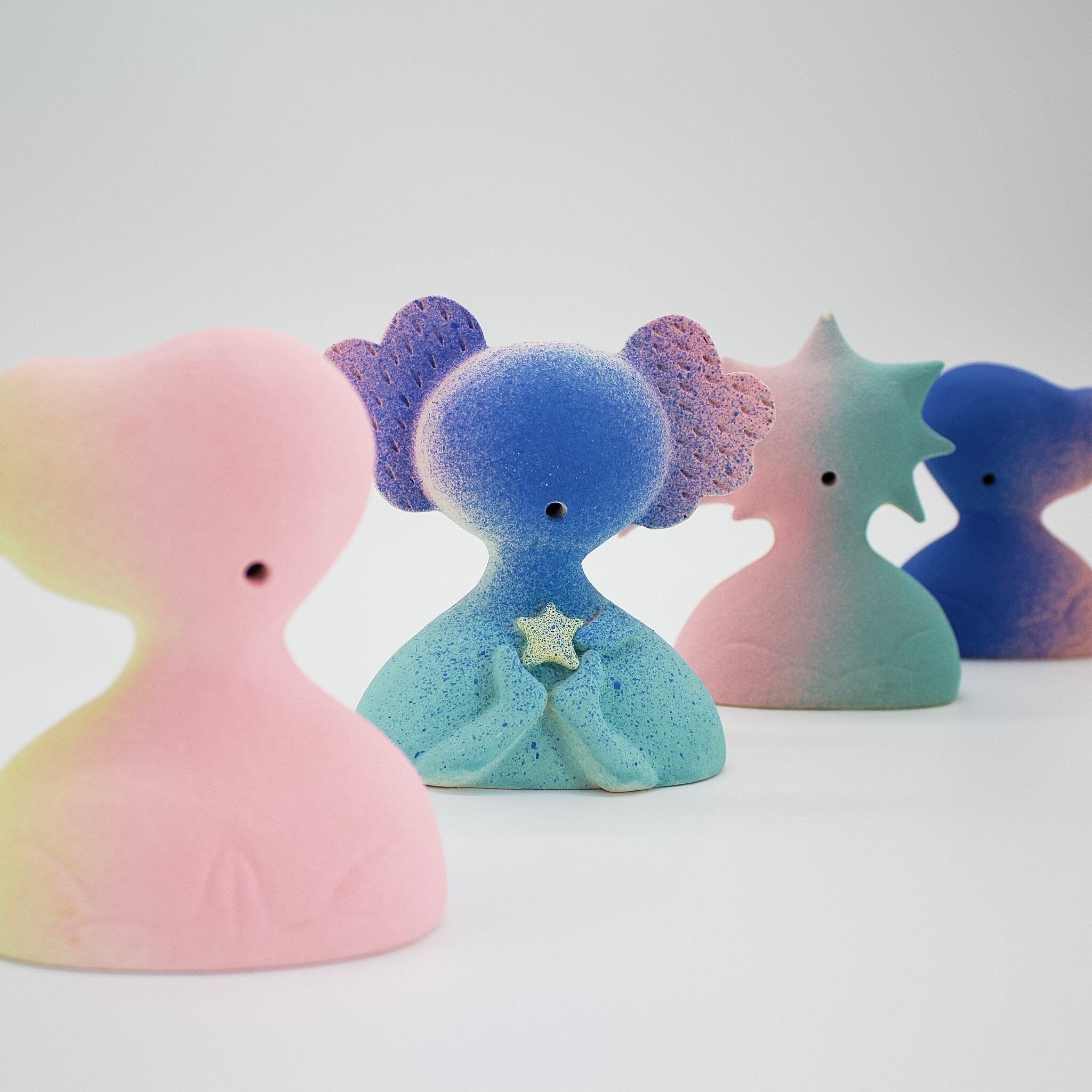 Yoko Nagai (YOKEY)’s artworks express a fantastical world where plump female figures, plants and animals coexist in unity. She finds beauty in imperfections such as random clay formations, distortions and flaws, and reflects in her work the strong vitality and fragility or mystery of life in the greatness and robustness of nature.
