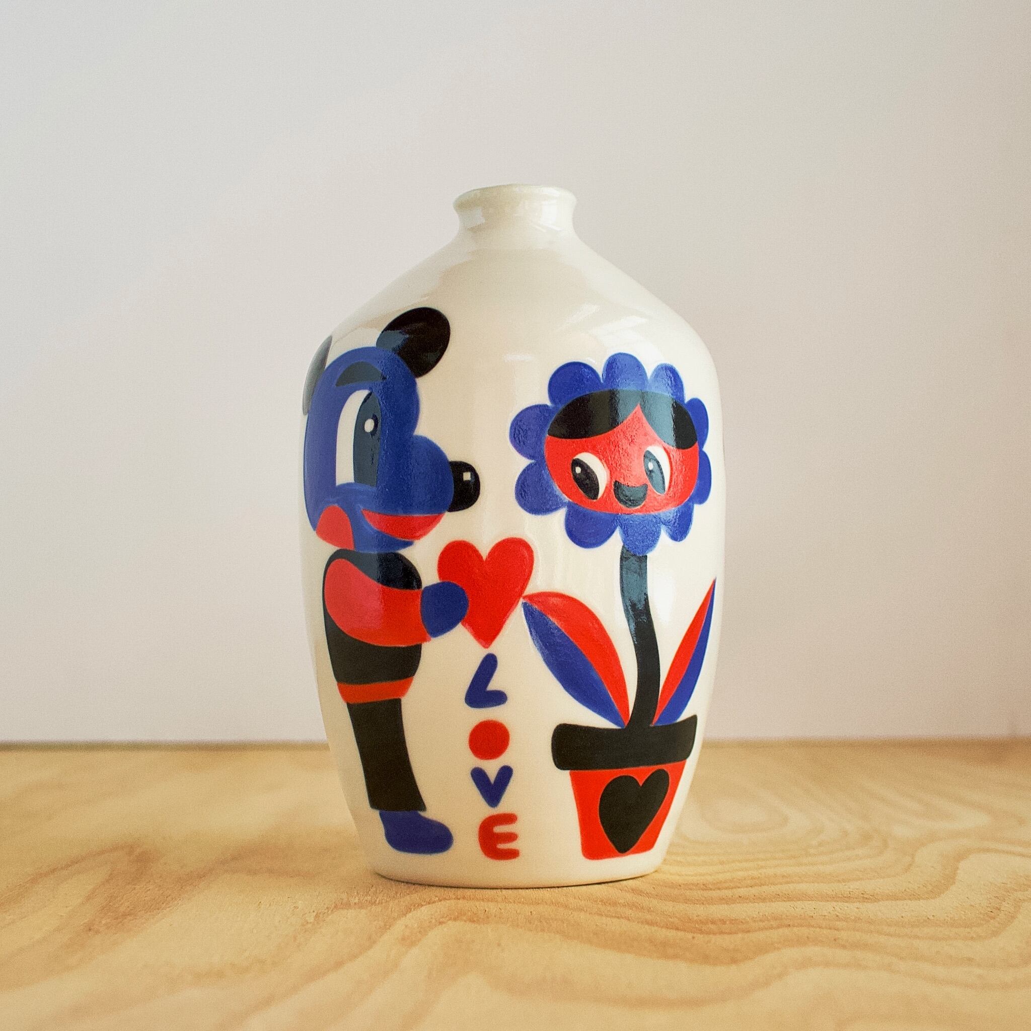 Japanese ceramicist Yoko Nagai (YOKEY) and British painter ROB KIDNEY are husband and wife who run a gallery in Tokyo while continuing their artistic activities together.YOKEY’s style is characterised by deep colours and soft beauty of form using traditional Japanese glazes, while ROB is known as an artist who freely paints a wide variety of vividly coloured characters.