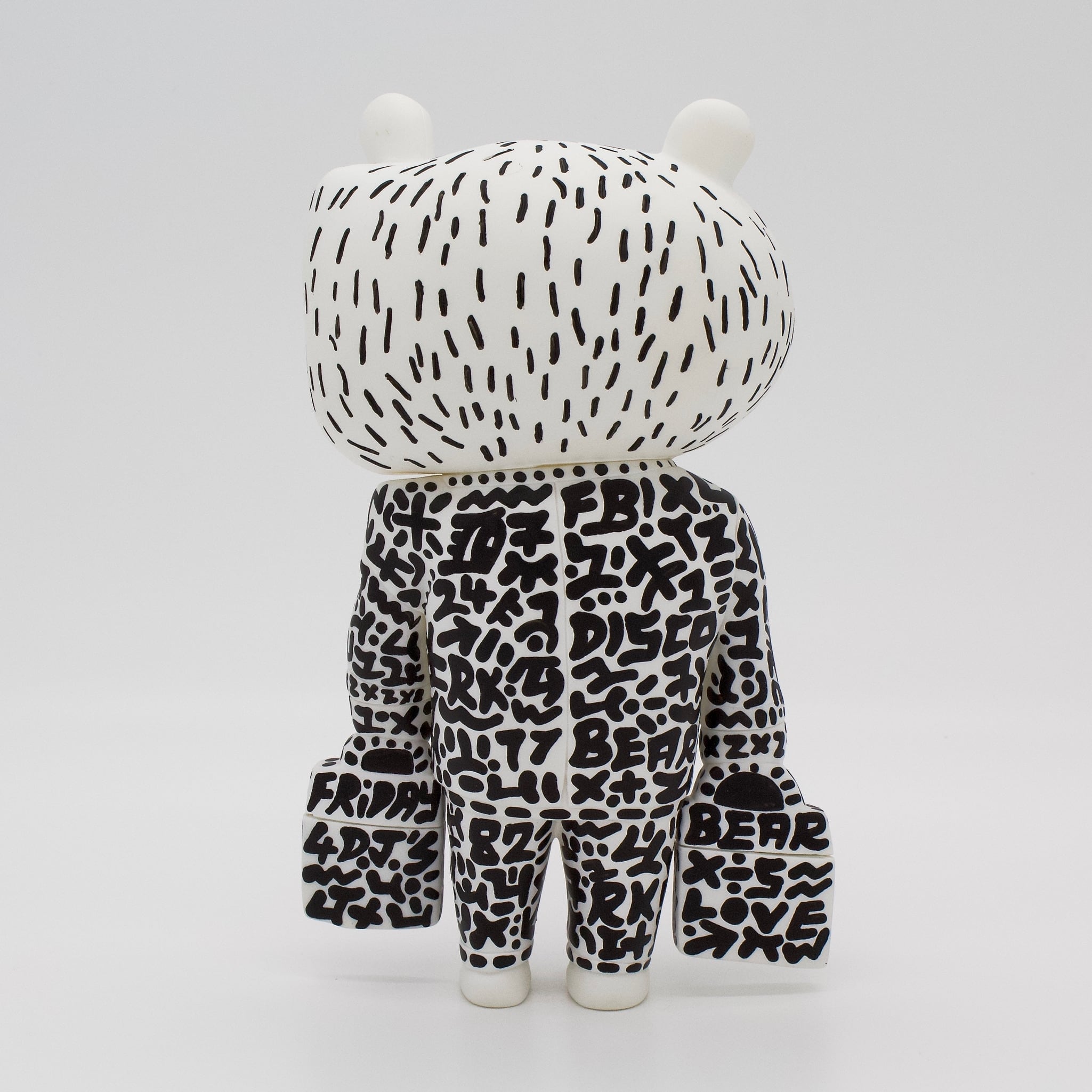 Hand-painted one-off art piece - Soft vinyl figure of ‘FRIDAY BEAR,’ an original character created by British artist Rob Kidney.