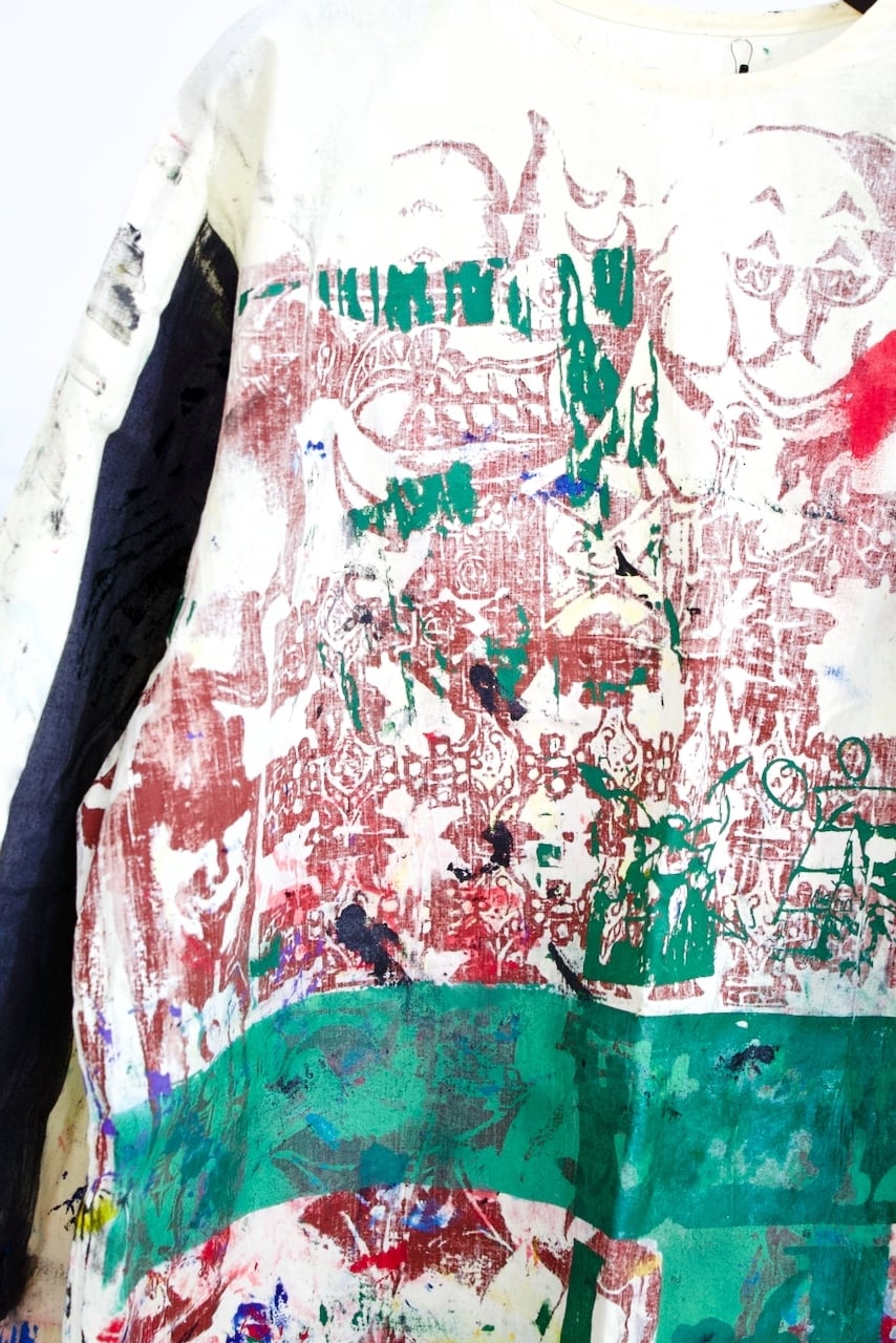Wash with care, this is a one-off art piece.
