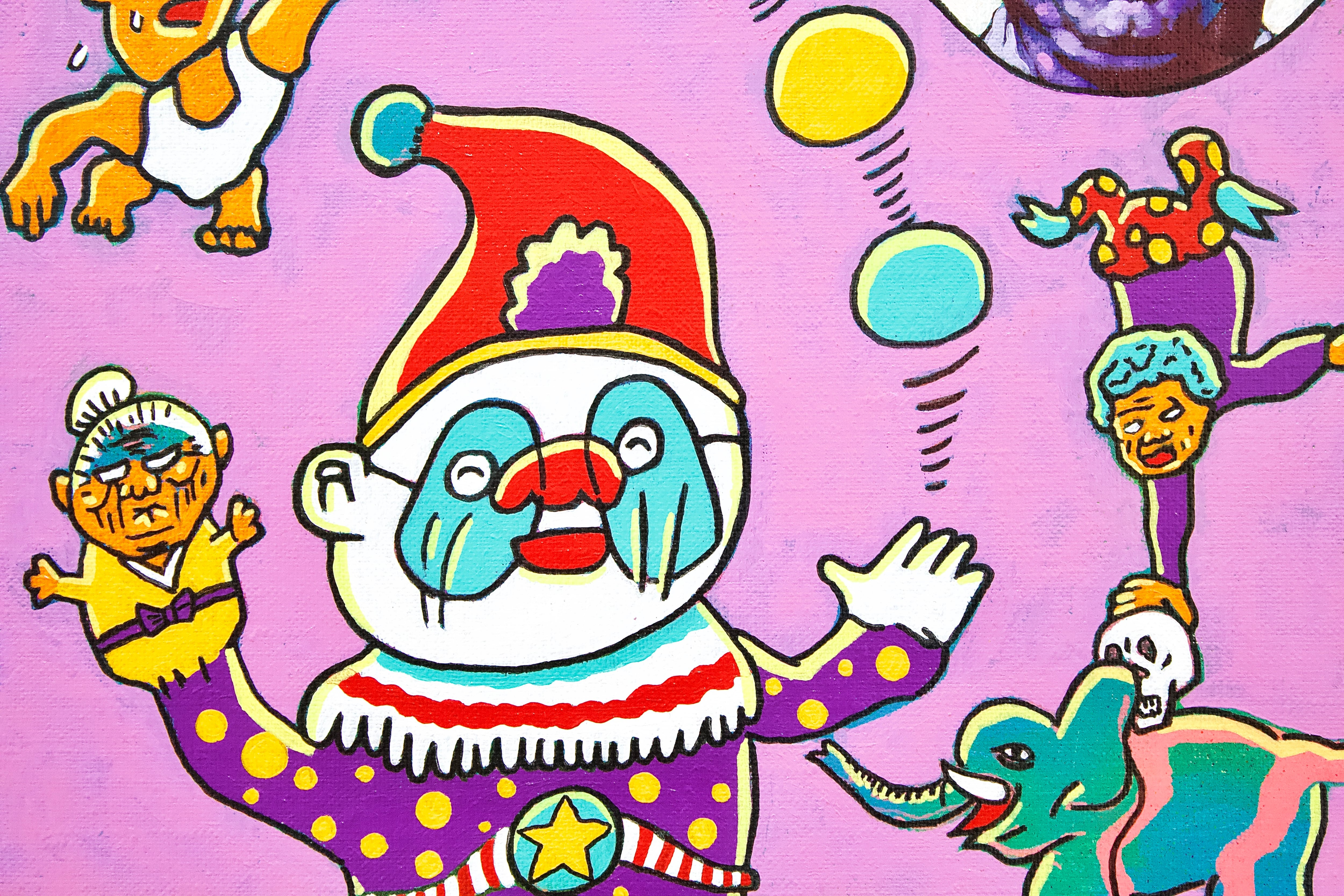 A collaborative original painting by Japanese subculture as an avant-garde manga artist Takashi Nemoto and the unorthodox style of realism painter Ken Hamaguchi.