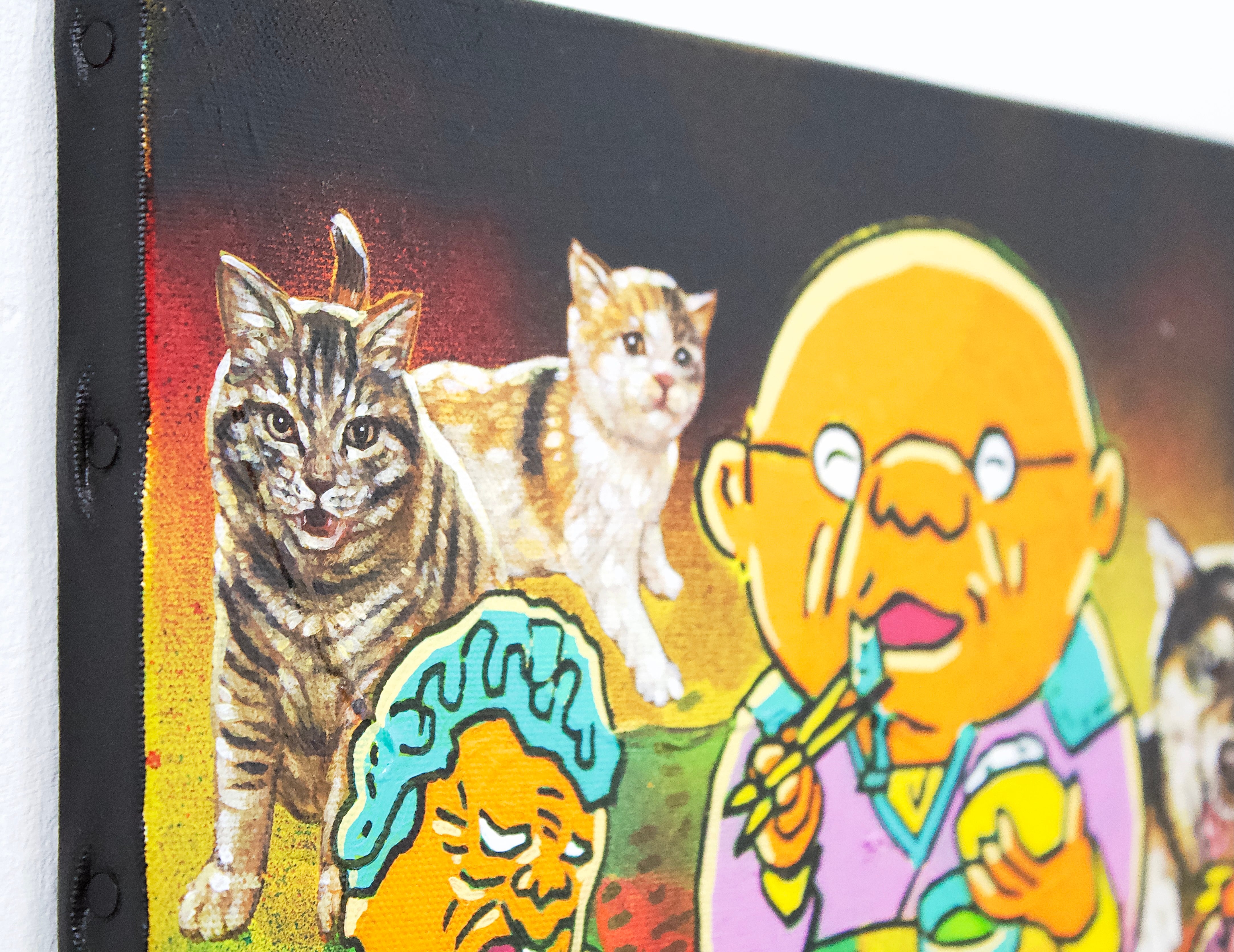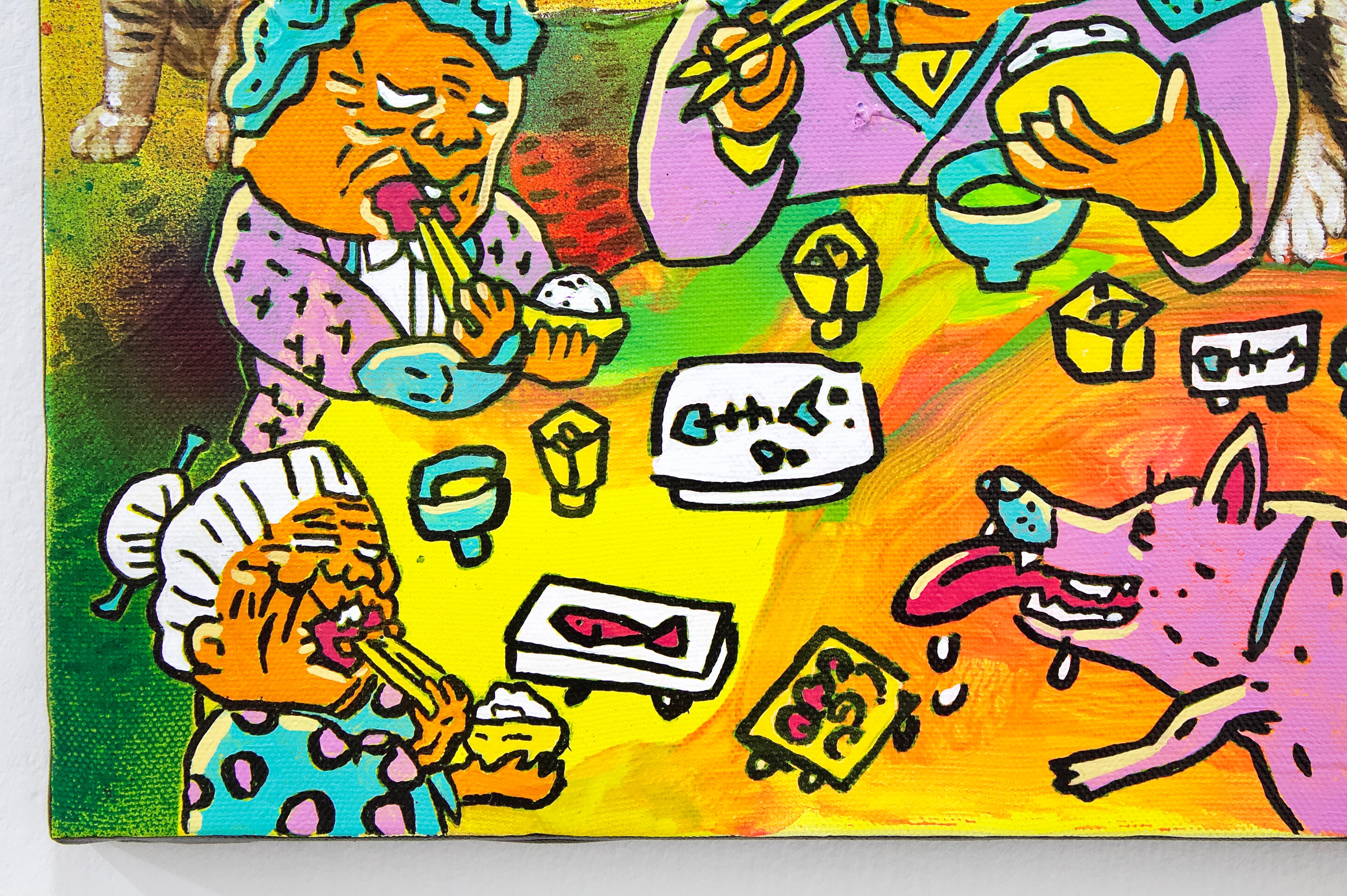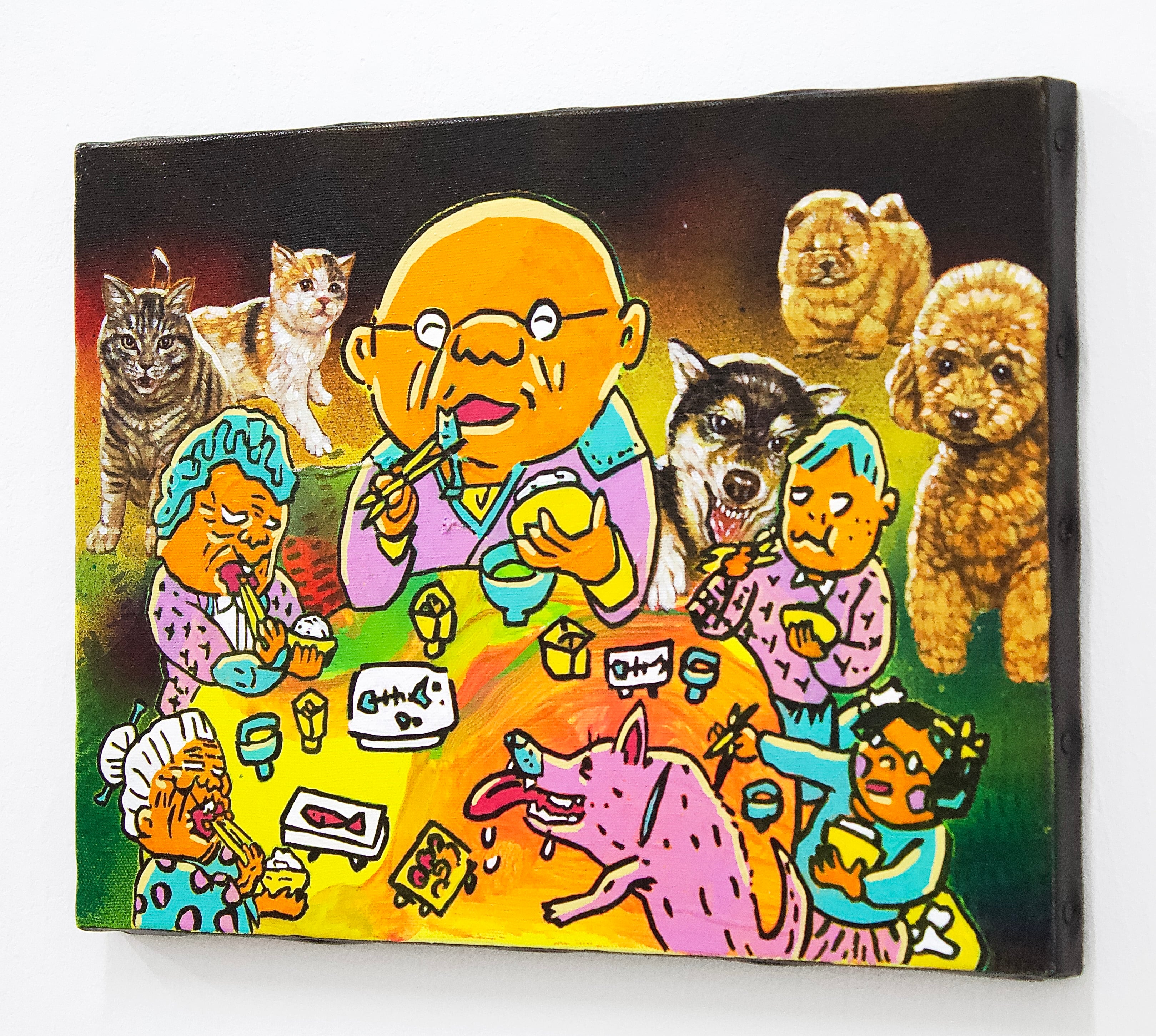 A collaborative original painting by Japanese subculture as an avant-garde manga artist Takashi Nemoto and the unorthodox style of realism painter Ken Hamaguchi.