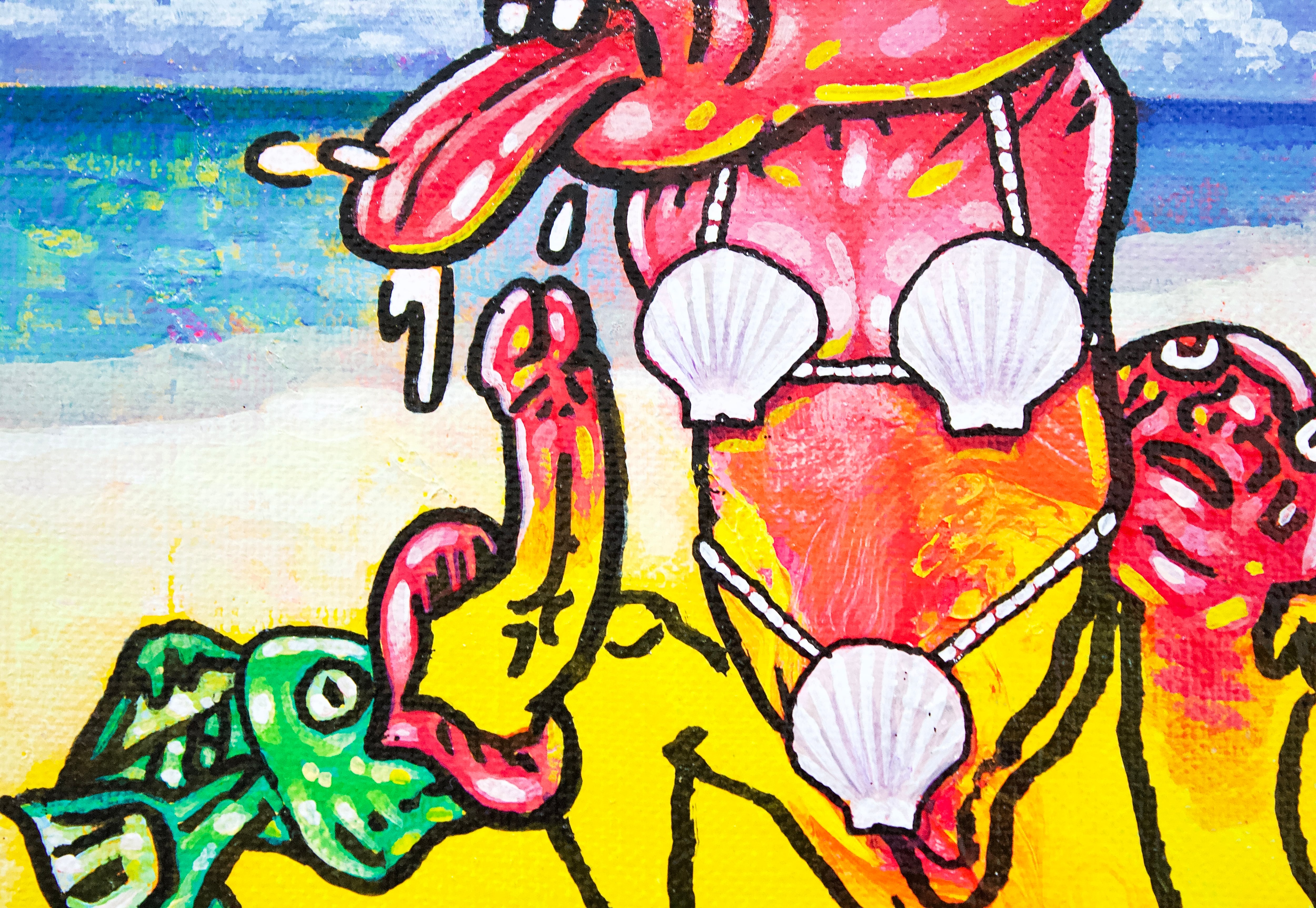 A collaborative original painting by Japanese subculture as an avant-garde manga artist Takashi Nemoto and the unorthodox style of realism painter Ken Hamaguchi.