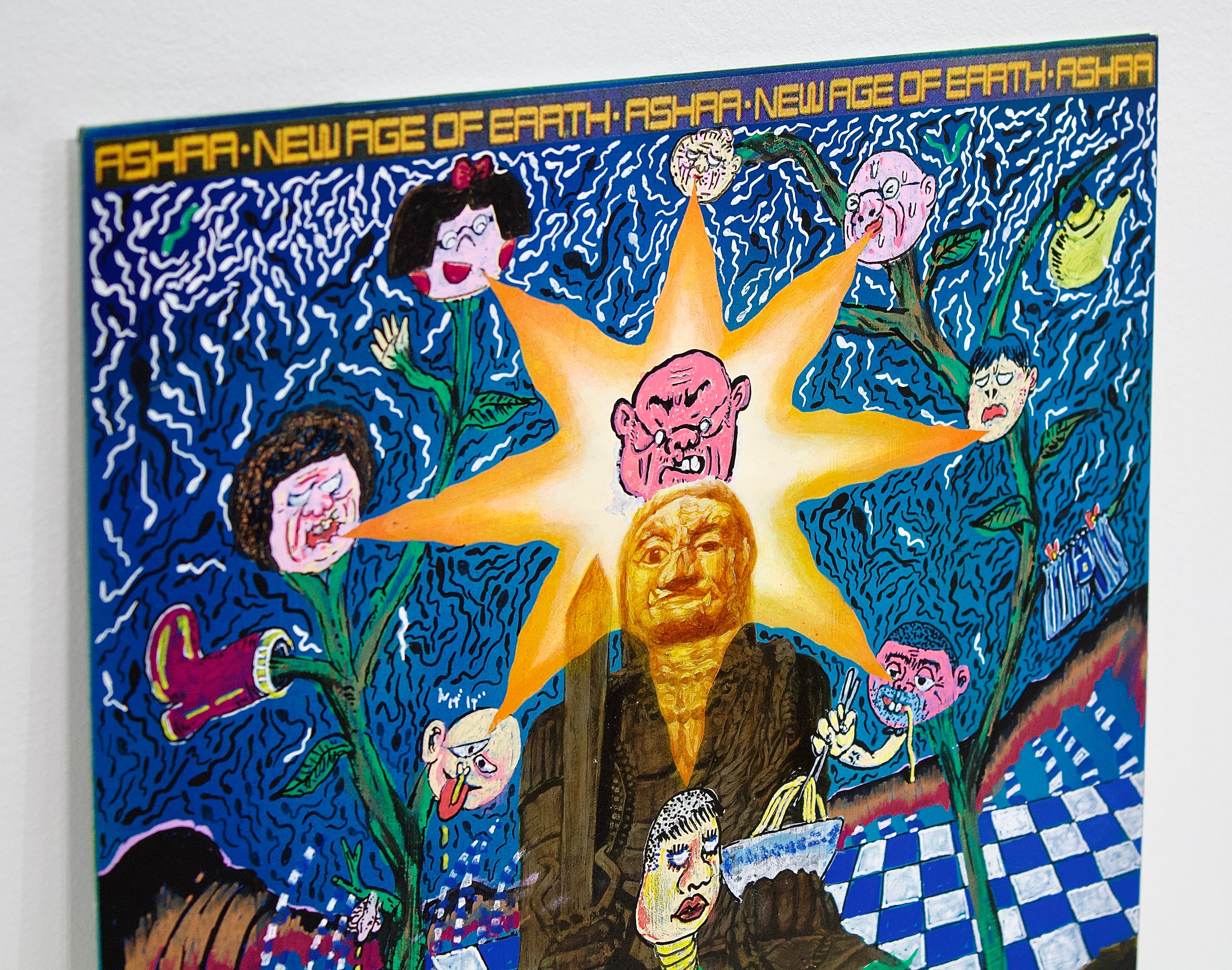 A collaborative original painting by Japanese subculture as an avant-garde manga artist Takashi Nemoto and the unorthodox style of realism painter Ken Hamaguchi.