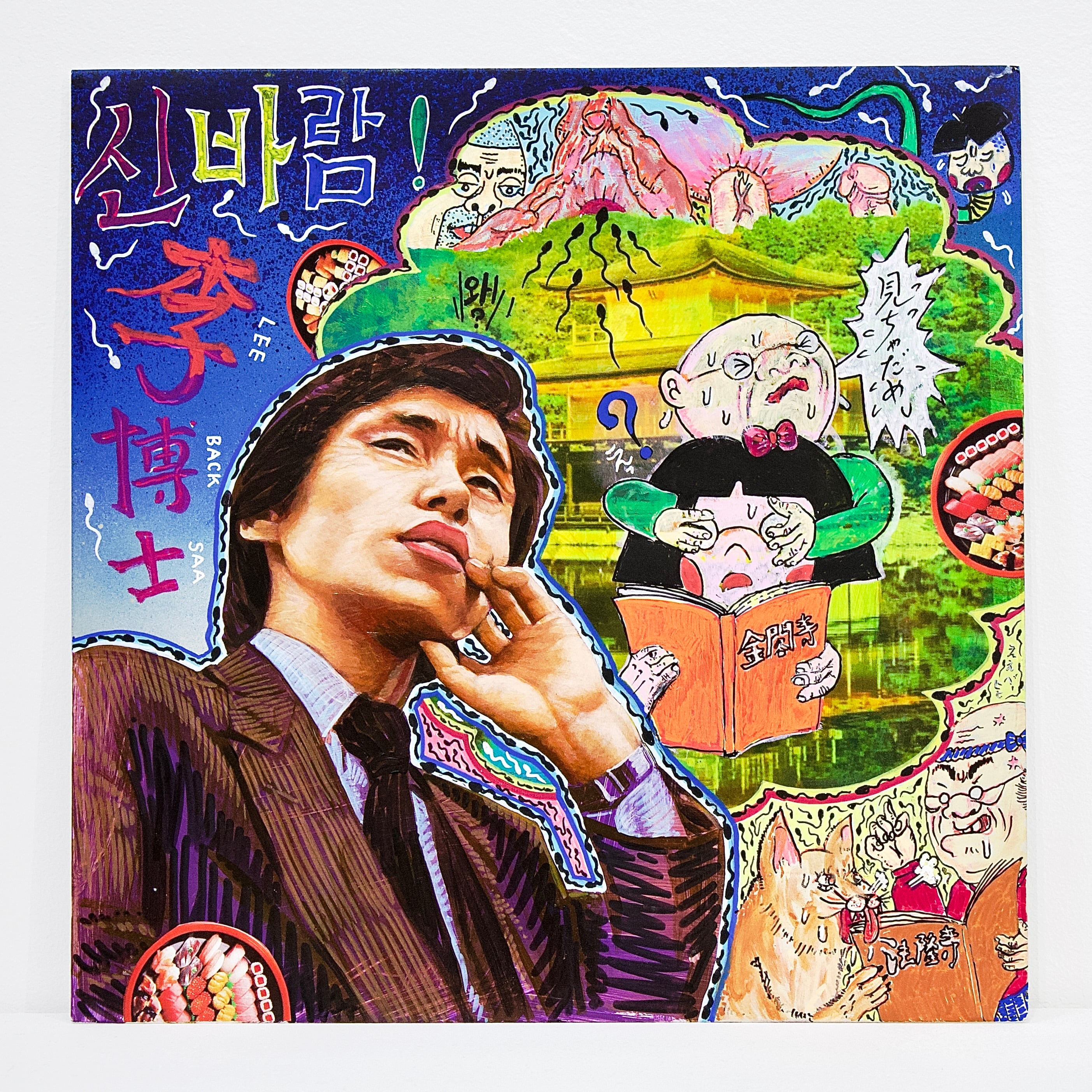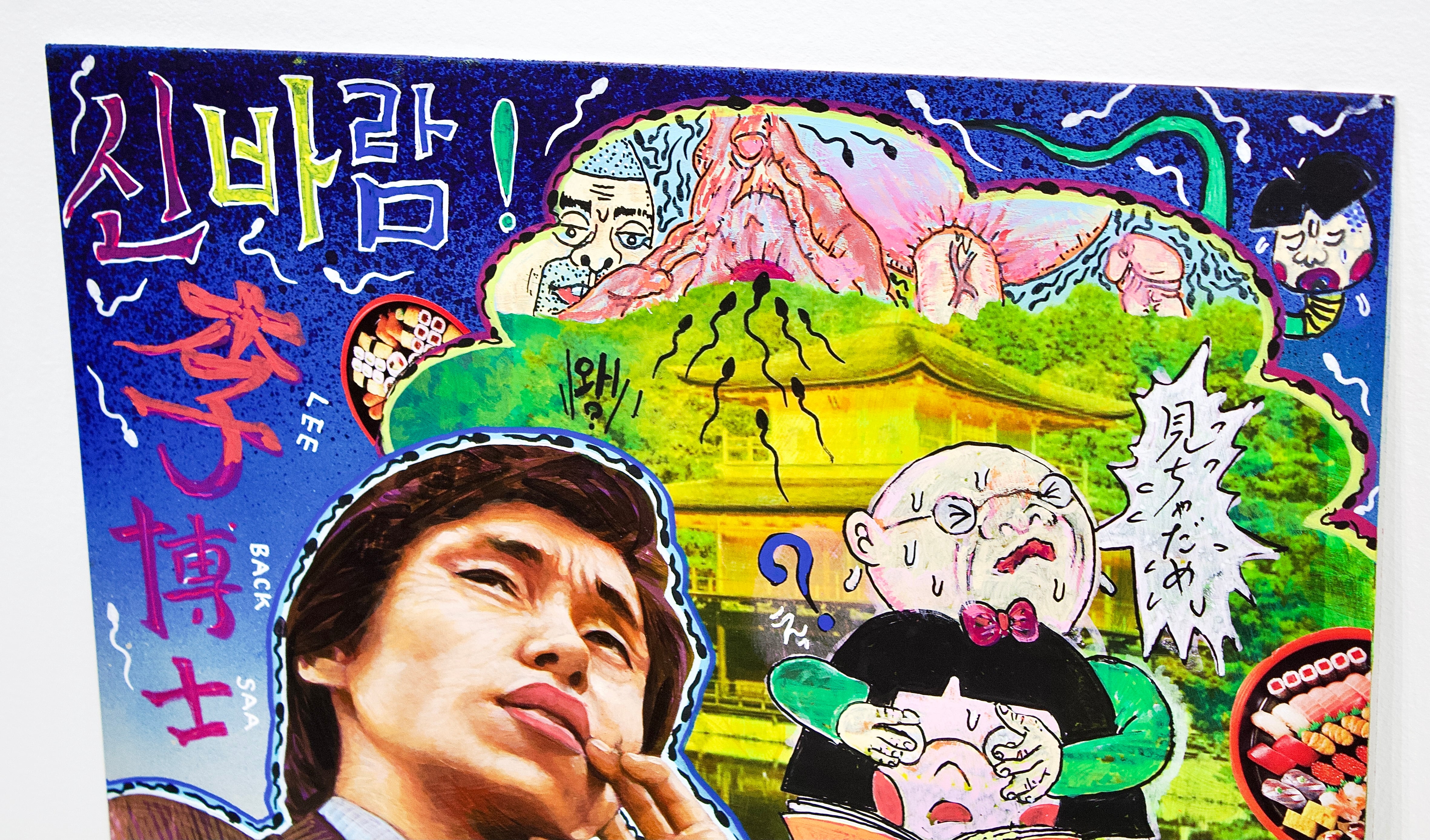A collaborative original painting by Japanese subculture as an avant-garde manga artist Takashi Nemoto and the unorthodox style of realism painter Ken Hamaguchi.