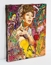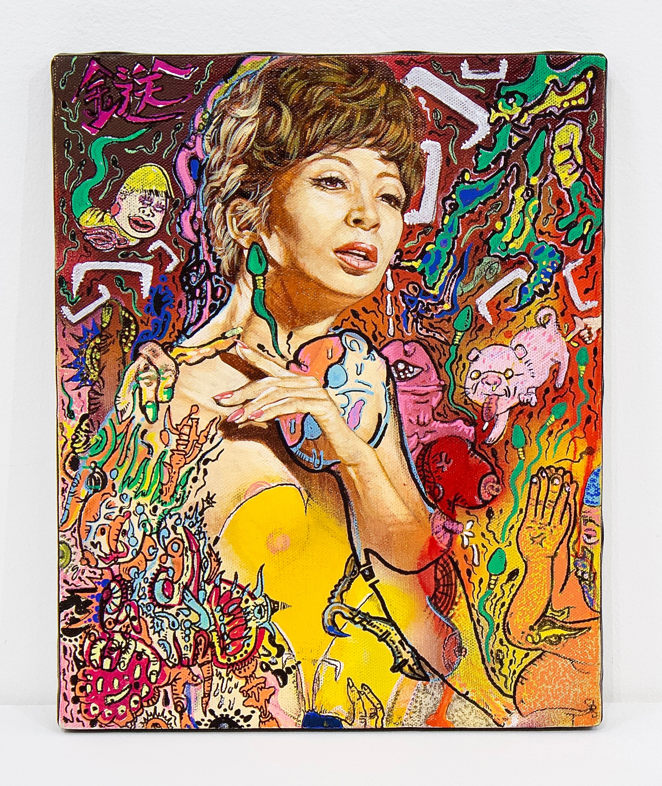 A collaborative original painting by Japanese subculture as an avant-garde manga artist Takashi Nemoto and the unorthodox style of realism painter Ken Hamaguchi.