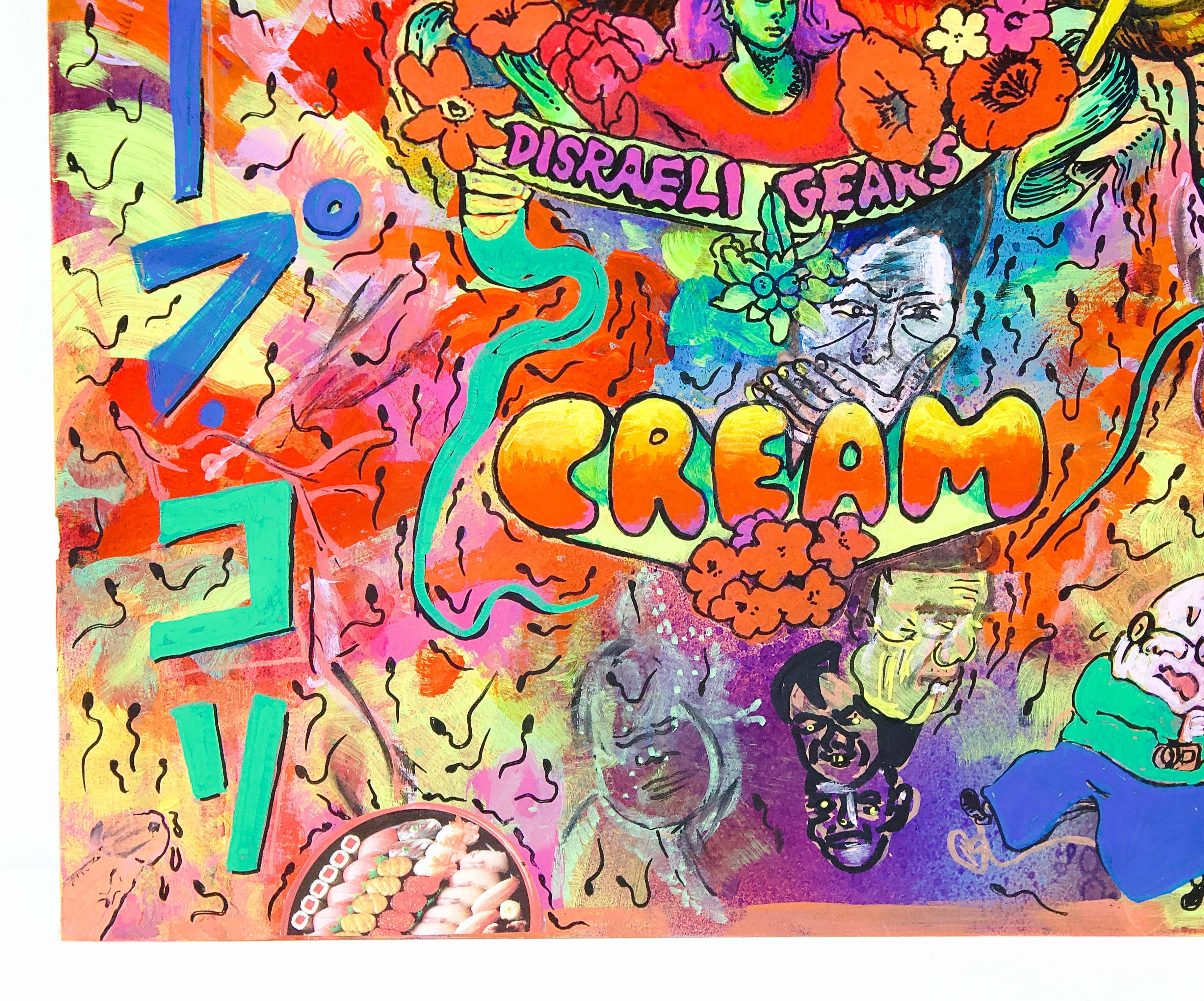 A collaborative original painting by Japanese subculture as an avant-garde manga artist Takashi Nemoto and the unorthodox style of realism painter Ken Hamaguchi.