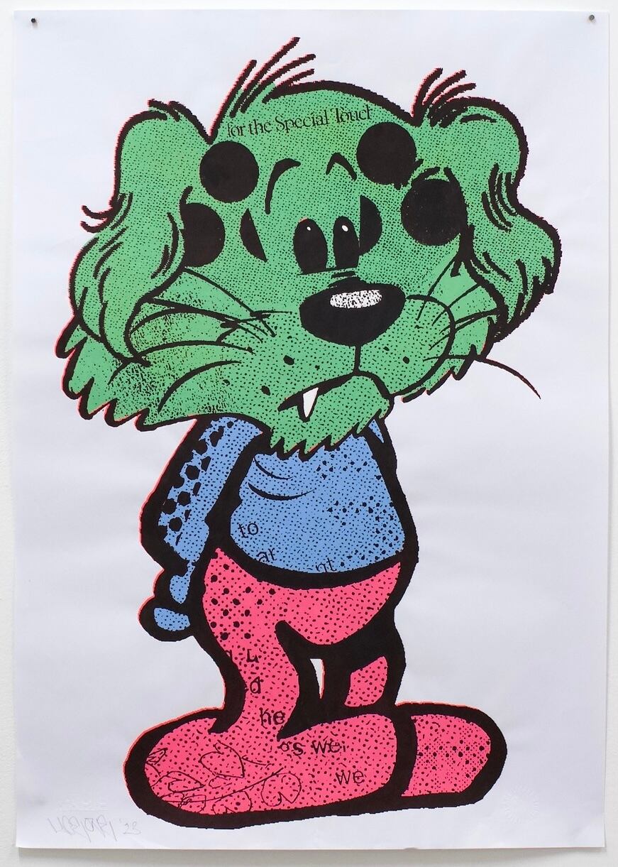 Drawing inspiration in part from Dada collage and classic pop art, to his time as a skateboarder and the bold graphics he encountered during this time, his work is a raw presentation of nostalgic imagery intuitively selected, blended and remixed with contemporary fragments, resulting in a new narrative with ambiguities and incongruities, humour and messages that reflect the absurdities of popular culture and a consumer driven society.
