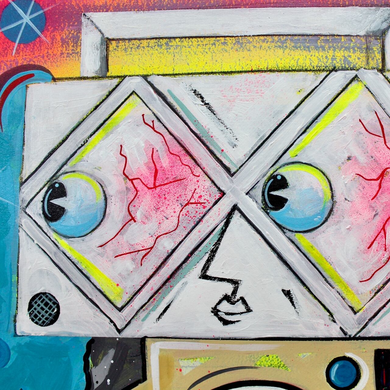 Vinnie Nylon has emerged as a graffiti writer in the 1980s and is known to have had a significant influence on many street artists, including Banksy. His pop and nostalgic style of freehand lines, mixing the old with the new, is admired not only by collectors but also by artists.